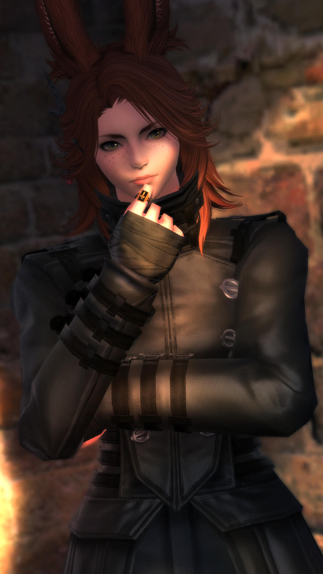 Rifra hails from the Vestnir Veena tribe, located within the forests at the foot of the Skatay mountain range. Peaceful were its days, avoiding conflicts despite the Garleans roaming just outside their perimeters. Within it is a tradition where a woman would be chosen to leave the village, granting them the opportunity to see the world beyond. At Rifra's twenty-fourth nameday, she was chosen by the Vestnir matriarch Nisuthel to be the next lucky woman to spread her wings.The night before her departure, however, Rifra approaches Nisuthel's home, wishing for advice on the outer world. What she finds instead was the matriarch collaborating with a Garlean contact, revealing the truth.The Vestnir tribe was a weaker tribe, unsuccessfully repelling Garlean invaders thirty years prior when they used the Skatay range forests to navigate Dalmasca. In order to maintain survival, Nisuthel struck a deal with the Garlean troops, offering up a woman of her tribe every few years as wives.Betrayed by the reality of the tribe, Rifra packed her own belongings and runs away, looking for Dalmascan rebellion groups to smuggle her far away from her tribe and Garlemald without looking back.Arriving at Limsa with just a weathered axe and a few belongings to her name, she cuts and dyes her hair and changes her name to Hillevi Solis, the bright ocean sun shining on her new life.This is all a lie.