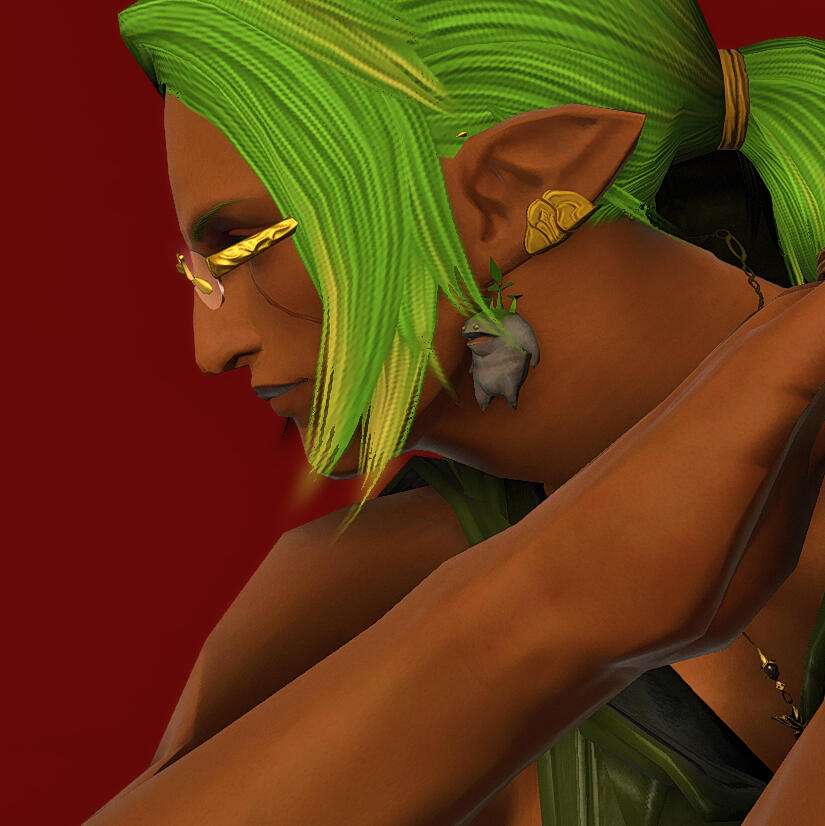 Met the elezen through Sr'dinhe and just ran into him coincidentally enough to be considered drinking buddies, maybe. He is now someone she considers a dear friend.